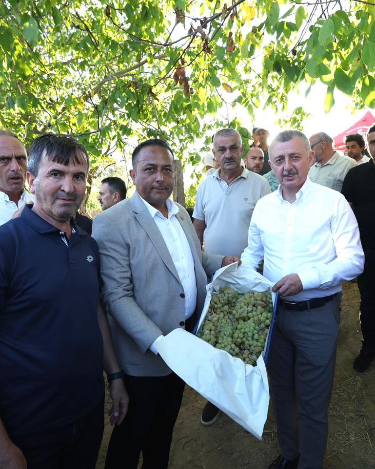 Arızlı Mahallesi’nde Sedat Yazıcı’ya ait 5,5 dönüm bağda gerçekleştirilen üzüm hasadına, Kocaeli Valisi İlhami Aktaş ve Büyükşehir Belediye Başkanı Doç.Dr.Tahir Büyükakın’ın yanı sıra; AK Parti İzmit İlçe Başkanı Halil Güngör Dokuzlar, Büyükşehir yöneticileri, muhtarlar ve üreticiler katıldı. Hasadın bereketli olması temennisinde bulunarak, güzel üzümler yetiştiren üreticileri tebrik eden Başkan Büyükakın, “Çiftçilerimizin alın teriyle yetişen bu güzelliklere şahit olmak bizler için büyük mutluluk. Üreticimizin emeğini büyütmek, toprağımızı verimli kılmak ve tarımsal üretimi geliştirmek için her zaman yanlarında olacağız. Çünkü biliyoruz ki; üretici kazanırsa, Kocaeli kazanır, Türkiye kazanır” dedi. Vali Aktaş da üzüm hasadının hayırlı ve bereketli olmasını diledi. Üzüm yetiştiricileri ise bu sene üzümün veriminden memnun olduklarını belirterek, tarımsal desteklerinden dolayı Başkan Büyükakın’a teşekkür etti.