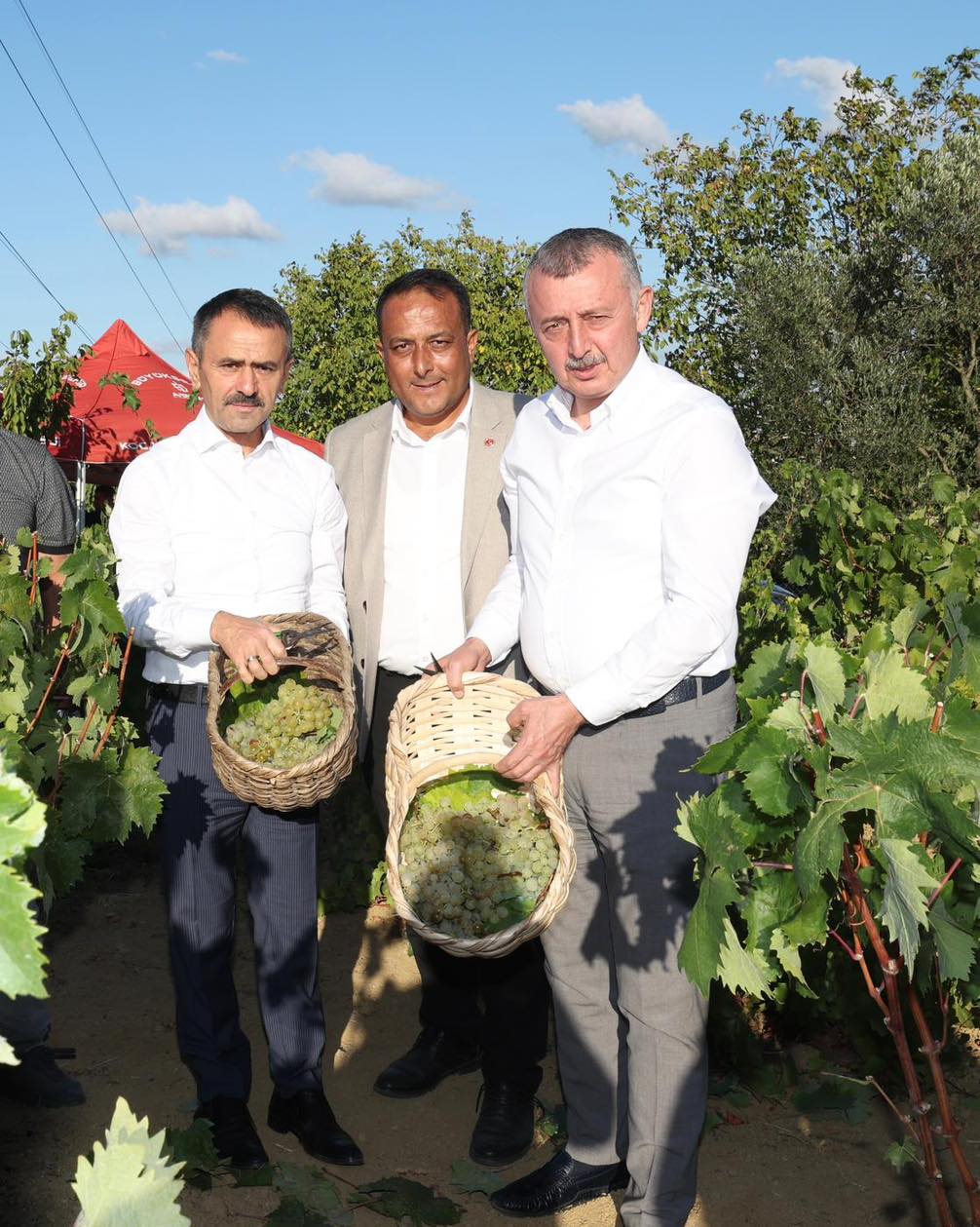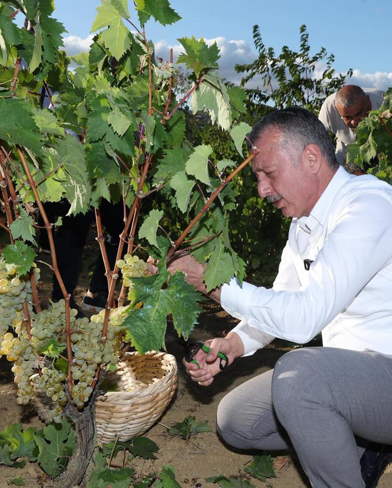 Kocaeli Büyükşehir Belediye Başkanı Doç.Dr.Tahir Büyükakın, Kocaeli Valisi İlhami Aktaş ile birlikte İzmit Kulfallı, Arızlı ve Akpınar’da yetiştirilen Osmanbey, Çavuş, Kınalı Yapıncak, Elhamra ve Balbal üzümlerinin hasadına katıldı. Kendine has aroması ve lezzetiyle bilinen, tüketicilerin yoğun rağbet gösterdiği üzümlerin hasadına katılan Başkan Büyükakın ile Vali Aktaş, bağda üzüm topladı. Üzümlerin hasadı, Kocaeli Büyükşehir Belediyesi’nin gübre ve mazot desteğinden yararlanan üreticilerin yetiştirdiği üzümlerin 1.5 gibi bir sürede olgunluğa ulaşmasının ardından gerçekleşti.
