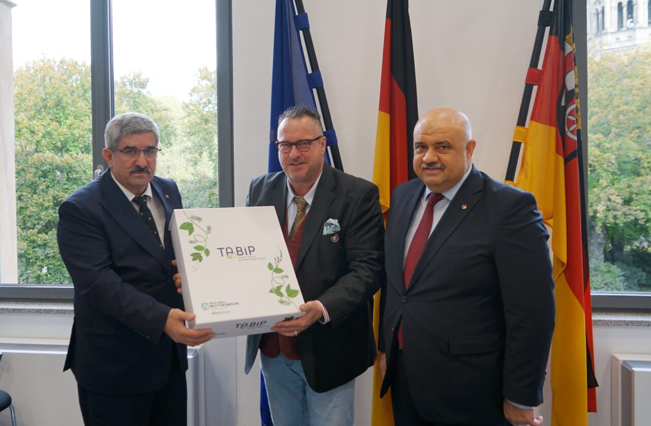 Rheinland-Pfalz Eyaleti’ndeki Bakanlık binasında düzenlenen görüşmede; Bakanlık Müsteşarı Andy Becht, Dış Ekonomik İlişkiler Dairesi Başkanı Dr. Joe Weingarten ve Dış Ekonomik İlişkiler Dairesi Uzmanı Kathrin Börnemeier, Pfalz Ticaret ve Sanayi Odası Dış Ticaret, Asya, Afrika, Arap Ülkeleri ve Dış Pazarlama Danışmanı Rafael Pekmezovic ile bir araya gelen Başkanlar Necmi Bulut ve Hüseyin Gezer’e, Çağın Göz Hastanesi Temsilcisi Tuna Çağın ile KOTO Araştırma ve Dış Ticaret Müdürü Oğuz Çağıl da eşlik etti.